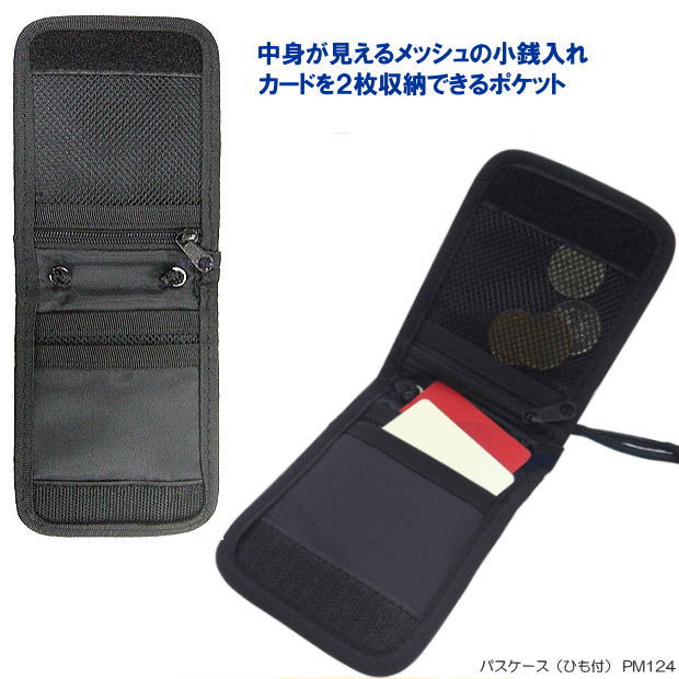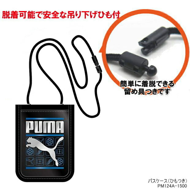 脱着可能で安全な吊り下げひも付のプーマパスケース。