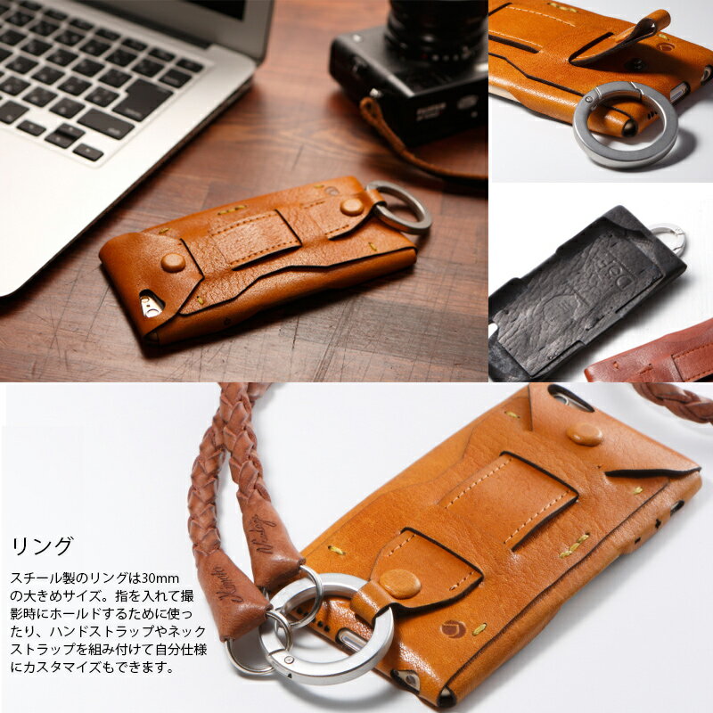 さらに使い勝手を高めるために、背面に大きなフィンガーベルトとスチール製のリングを組み付けました。
